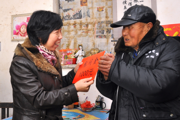 “快过年了,代表学校来看看您,您为国家做贡献了啊,”在87岁的参加过抗日战争、解放战争和抗美援朝的孤寡老人李魁忠家里,张潍华把一千元的慰问金递到老人手中,老人发自肺腑地说:“感谢国家,感谢党,日子越过越好。”
