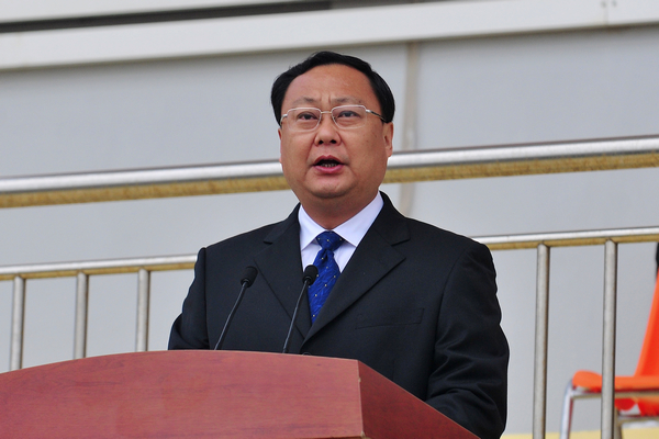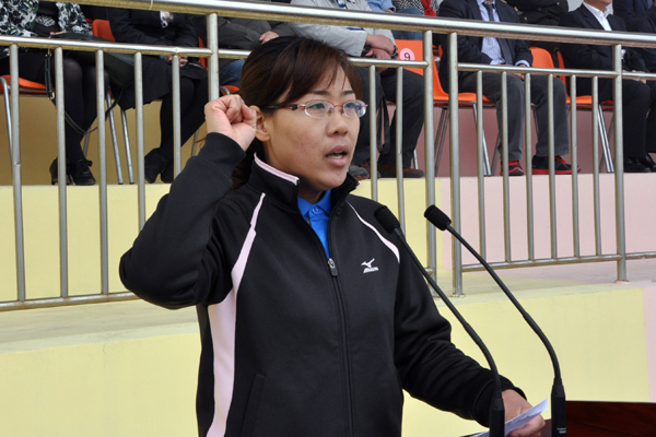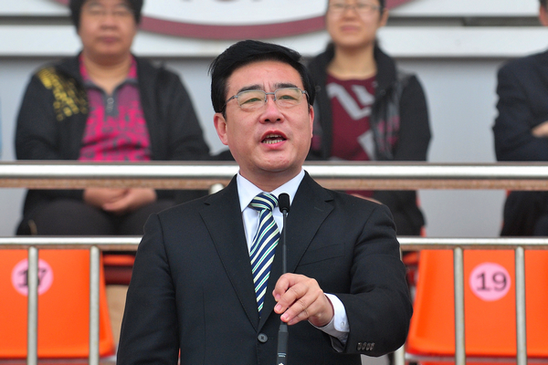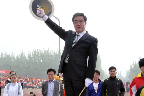 校党委书记石增立宣布第四十一届运动会开幕,并鸣发本届运动会第一枪。