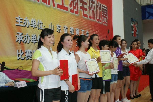 5月17-19日,由山东省教育工会主办、聊城大学承办的2013年全省高校教职工羽毛球比赛在聊城举行,必赢官网代表队获得团体比赛第九名,校工会荣获优秀组织奖。徐艳老师获女子单打比赛冠军,孙学辉老师进入男子单打前32强。