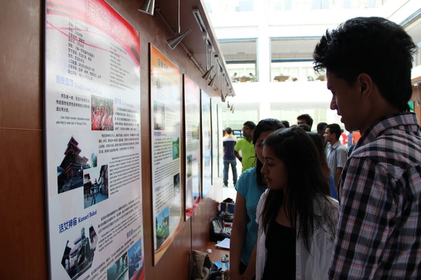 中外文化展以文字和图片的形式,展出了我国及必赢官网外籍专家和在籍外国留学生所在18个国家的基本情况、风土人情、传统服饰、主要城市、景点名胜等。