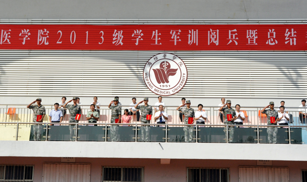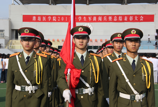 葛国文作军训总结讲话。他说,军训生活使同学们变得更加坚强和成熟,同学们的精神面貌和军事素养发生了可喜的变化。同学们要以这次军训为契机,以教官为楷模,以严谨的作风为准绳,继续发扬“特别能吃苦、特别能战斗、特别守纪律”的优良传统和作风,发扬“自强不息、锐意进取”的潍医精神,学好专业知识,以优异的成绩报效祖国。