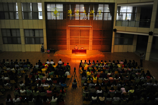 讲座由宣传部长刘汉波主持,副校长葛国文、校团委书记高洪海、宣传部副部长张伟与师生们一起聆听了讲座。