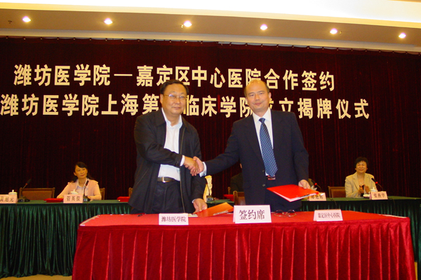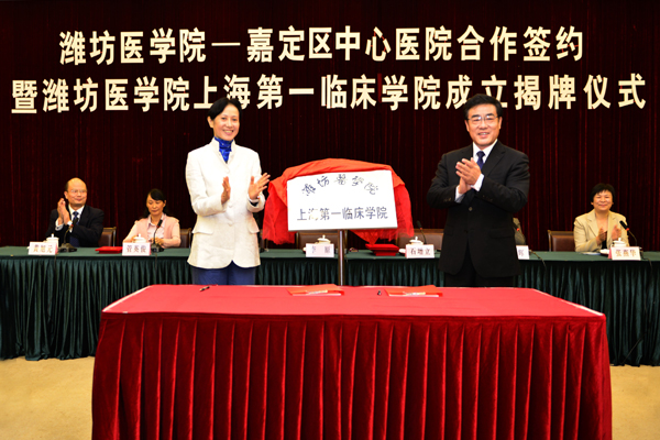 仪式上,李原代表嘉定区人民政府、郑艳辉代表嘉定区卫生局对潍坊医学院和嘉定区中心医院的合作表示诚挚祝贺。马安宁宣读了潍坊医学院关于聘任上海第一临床学院院长、副院长的决定,管英俊宣读了聘任上海第一临床学院研究生导师、教授、副教授、讲师的决定,学校领导向被聘院长、副院长和教师代表颁发了聘书。