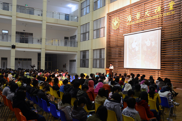 张从军主要研究方向是图像艺术和地域文化,他用180幅栩栩如生的年画,从不同历史、不同地域的角度,讲述了各种各样的年画的特点和蕴含的丰富、美好、朴素的生活涵义。“我们时时处处生活在民俗中”,张从军以诙谐幽默的比喻、引领着在场师生走进了一个由不同年代、不同类型、不同寓意共同构筑的别具特色的年画世界。丰富了师生对年画艺术的了解,提高了年画的艺术鉴赏水平,拓展了师生民俗文化的知识视野,为潍医大讲堂增添了一份独特韵味。