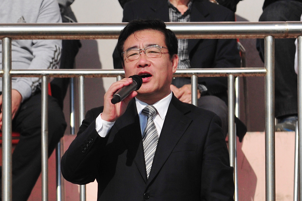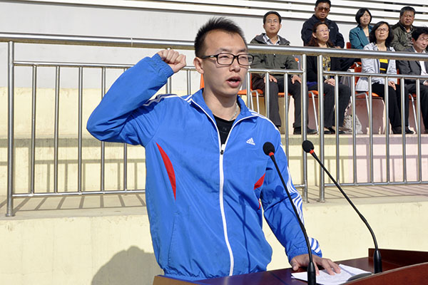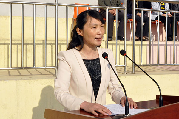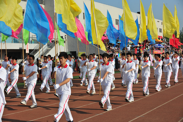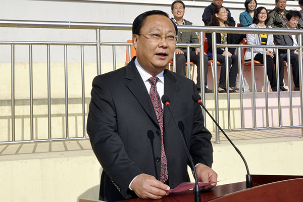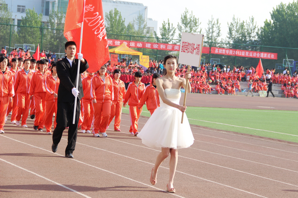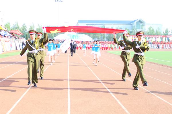 仪仗队、裁判员、运动员入场后,校党委副书记、校长马安宁致开幕词。他希望全体运动员发扬“更高、更快、更强”的奥林匹克精神,赛出成绩,赛出友谊;希望全体裁判员严肃认真,公正裁判;希望大会工作人员和全体同学精心组织、文明观赛,努力把本届运动会办成平安和谐、团结合作的体育盛会。