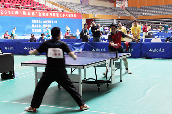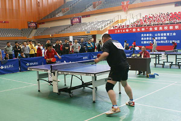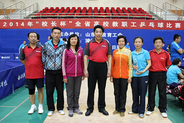 5月6日至9日,由山东省教育工会主办的2014年“校长杯”全省高校教职工乒乓球比赛在潍坊学院体育馆举行,必赢官网由副校长井西学率领李峰、鞠晓华、张金宝、汤敏老师组成的代表队参加了比赛。