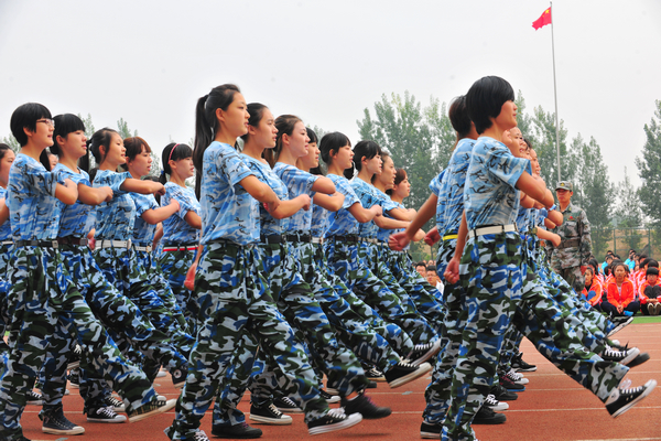 汇报检阅仪式在庄严肃穆的国歌声中拉开序幕,3400余名参训同学伴着高昂的军歌旋律,喊着响亮的口号,精神饱满地走过主席台,向全体与会人员展现了他们的飒爽英姿和良好精神面貌。随后,整齐划一的队列表演和虎虎生威的军体拳表演赢得了全场热烈的掌声。