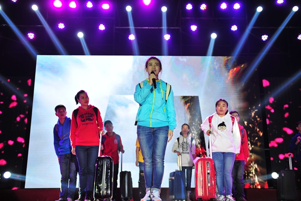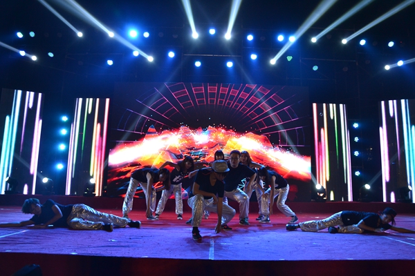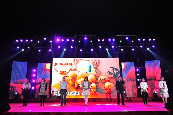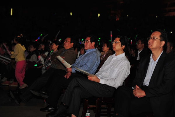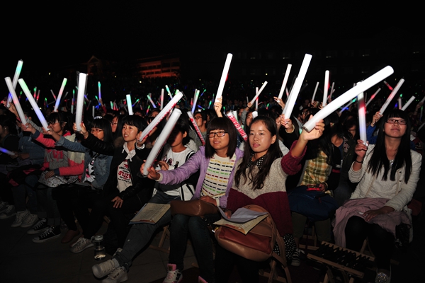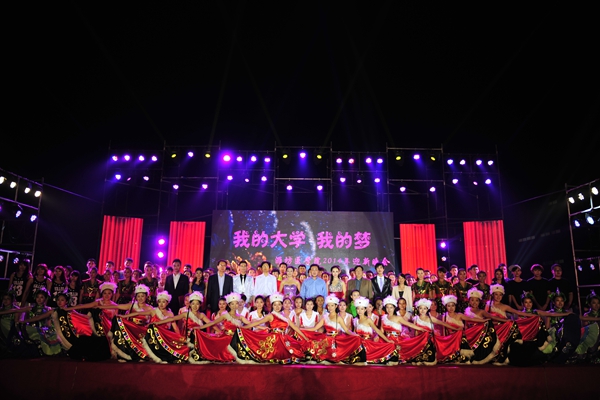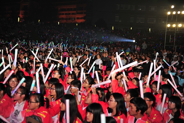 晚会在《花开十月》的优美舞姿和同学们热情的欢呼中拉开了帷幕。大气磅礴的开场调动了大家的情绪,整个晚会在荧光棒辉映下变成了五彩缤纷闪烁摇曳的海洋。紧接着欢快而又充满正能量的歌曲串烧《向快乐出发》彻底点燃了现场气氛,全场一起呐喊着随着演唱者纯粹、干净利索并具有穿透力的歌声有节奏地挥舞荧光棒。武术表演《壮志凌云》锦旗飞扬,双节棍舞动,展现了青年学子的激情与力量,展现了博大精深的中华文化。晚会场面达到最爆棚的,当属辅导员老师们带来的《相亲相爱一家人》合唱,舒缓动人的旋律和温馨感人的话语,回应着全场同学们的热情,抒发了老师们对2014级新同学的关切与厚望,整个表演流露出浓浓的师生情谊。2014级研究生带来的歌伴舞《一路上有你》,让人联想到求学路上,有爱人的陪伴,有朋友的支持,更有父母的呵护,彼此扶持,一路有你很温暖。晚会在合唱《光荣与梦想》激昂的旋律和同学们对未来美好的憧憬中圆满落幕。