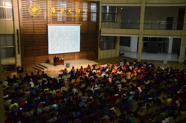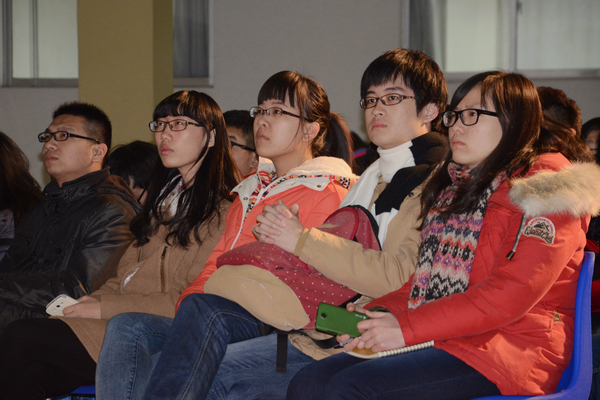傅永聚生动地讲述了儒家文化中的深刻思想,突出表现了儒学中的进步思想,分析了国学中蕴含的的巨大精神力量与当今国家兴盛的唇齿相依。他强调当今中国需要文化的建设、精神与道德的建设,这将是中国走向复兴之路的最大基石。傅教授慷慨激昂的演讲让在场师生热血沸腾,不时爆发出阵阵掌声。