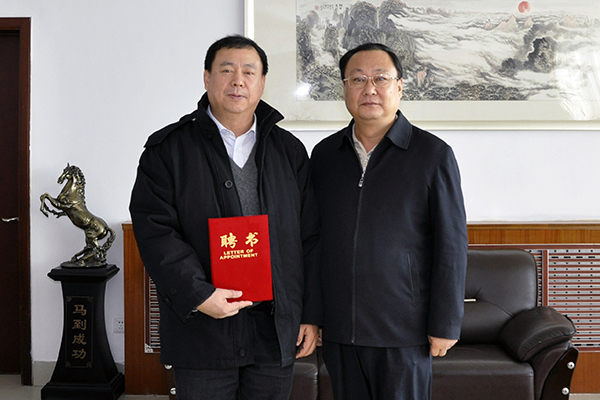 校长马安宁为倪家骧颁发聘书,学校办公室、人事处、麻醉学系负责同志参加了聘任仪式。