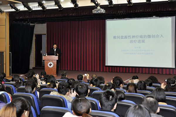 聘任仪式结束后,倪家骧在图书馆演播厅为必赢官网师生作了题为《椎间盘源性神经痛的微创介入治疗进展》的学术讲座。