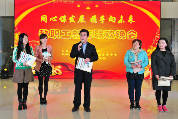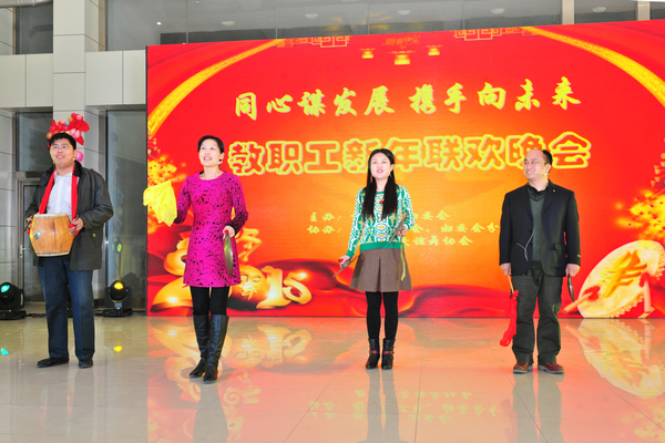 1230晚,“同心谋发展,携手向未来”教职工新年联欢晚会在办公楼六楼中厅举行。校党委书记石增立、副书记张潍华、副校长朱军、葛国文以及学校各党总支、部门、院(系)负责人,工会分会、妇委会分会负责人和教职员工一起参加了联欢。