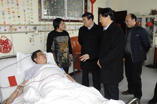 在获悉张传朋骨髓配对成功的消息后,附属医院院长李群与副院长隽兆东、院长助理朱俊义等专程赶到中国人民解放军空军总医院造血干细胞采集室看望了张传朋,转达了学校领导对张传朋的关心和问候,对张传朋的义举表示崇高的敬意,并送上了特别慰问金。