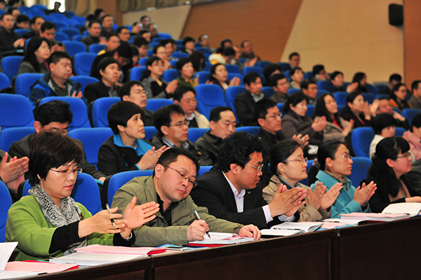 管英俊作了题为《强化队伍建设,提升培养质量,努力提高必赢官网学位与研究生教育水平》的主题报告,她介绍了学校研究生教育取得的成绩、存在的问题,提出了下一步研究生教育发展的主要任务:优化研究生教育结构,加快培养模式改革,深入探索研究生分类培养机制;采取有效措施,提高生源质量;突出特色发展,着力强化学位点建设;加强导师队伍建设,提升指导水平。管英俊要求各位导师要为人师表、做教书育人的典范,一要努力做到德才兼备、率先垂范;二要增强责任,精心育人;三要注重学习,勇于创新,认真履行好导师责任,做“四有”好导师。