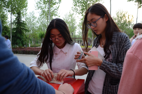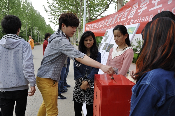 下午5点,学生下课,就餐,路过,捐款的人越聚越多。大家把钱塞进捐款箱,以“快闪”的速度迅速离开,尽量躲避着记者的镜头。2012级生物科学与技术学院的伏同学认为,捐款是人道主义情怀的体现,是人性使然,不必张扬。与她一起来参加活动的于同学说:“我们每次刷微博时,满屏幕都是尼泊尔地震的情形。要行善,去帮助他们,因为每个人也总有受帮助的时候。”