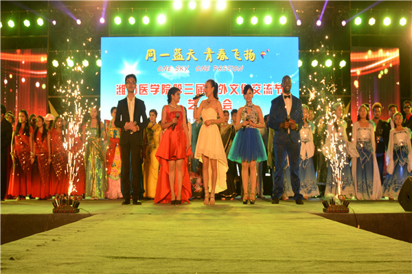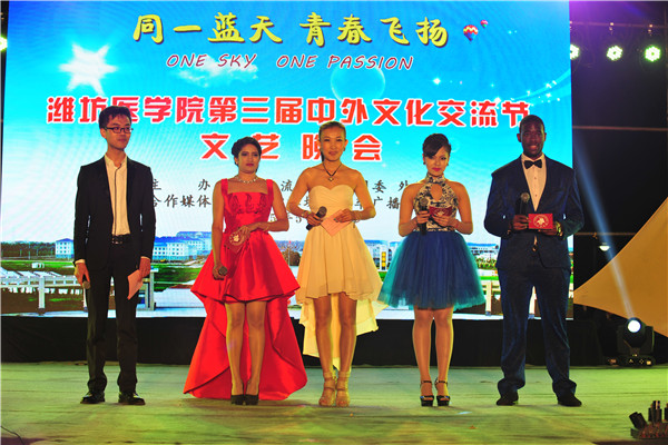 来自南亚、非洲等20余个国家的必赢官网留学生,以舞蹈、歌曲、乐器、服装表演和中华传统文化展示等形式,与中国学生一起参与了演出。文艺演出以热情洋溢的《Bollywood Dance》开场,欢快的舞步和动感的旋律迅速点燃了演出现场的气氛;印度籍兄妹组合用天籁之音演绎了歌曲《I won’t give up》;加纳籍留学生Rosemond独唱欢快的歌曲《Chandelier》;中国学生表演的歌伴舞《三寸天堂》细腻深情,将古典浪漫柔情演绎的淋漓尽致;晚会现场,尼泊尔地震的受灾留学生用歌曲《感恩的心》表达了他们对中国人民和潍坊医学院老师、同学们的无私援助。舞台上这些手捧蜡烛、朴实无华的学生缺乏演出经验,甚至中文发音都不准,但真诚的谢意感染了观众。场下观众纷纷拿出手机,打开闪光灯,星星点点的手机灯光汇成了一片灯的海洋,台上台下心灵相约、温馨感人,共同传递着善良互助的正能量,传递着中尼千年友好的美丽愿望。两支留学生乐队:马马虎虎乐队和Pravin乐队的演出,将现场引爆;青春绚丽、阵容华丽的中外学生时装表演令观众目不暇接,各国、各民族传统服饰、商务装、沙滩装、情侣装、晚礼装等相继登场,中国学生身着汉、唐、明、清、民国服饰,雍容典雅、仪态大方,展现了博大精深的中华传统文化。随后,原汁原味的南亚舞蹈、嗨爆全场的国际学生Hip-pop舞蹈、特邀FM93.3主持人们的演唱等,结合现代声、光、电舞台效果,带动现场气氛一浪高过一浪。观众手机频闪,微信圈、朋友圈、好友群,无一不在传递晚会的激情狂欢和中外多元文化的交流与融通。
