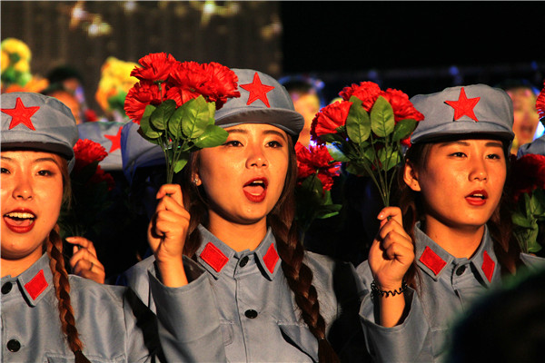 晚会现场,大学生艺术团的同学们还为师生们带来了精心准备的合唱《忆秦娥·娄山关》《天路》和歌曲《我爱你中国》。晚会在全体大合唱《走向复兴》的歌声中落下帷幕。