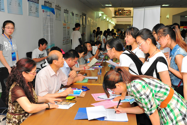 7月1日,以“科学择业,成就梦想”为主题的2015届毕业季招聘会在浮烟山校区图书馆举办。副校长葛国文到招聘现场进行了指导。