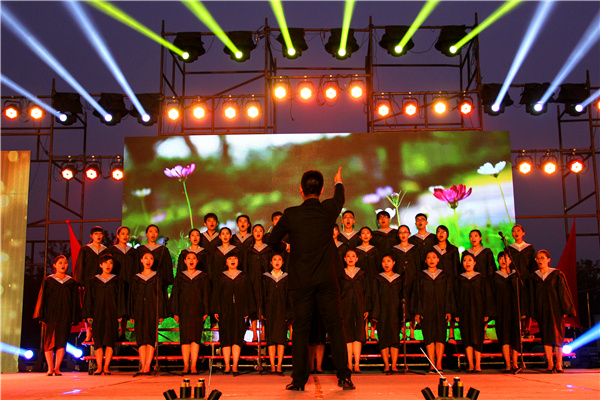 校党委书记石增立担任《忆秦娥·娄山关》和《天路》两首合唱曲目的指挥,给毕业生带来了意外惊喜,让全场学生感受到了母校的关怀和温暖,将整场晚会推向高潮。在全场的欢呼声和掌声中,石书记为即将踏上征程的潍医学子送上了深情祝福,勉励大家面对生活中的困难和挫折,要有“雄关漫道真如铁,而今迈步从头越”的情怀和勇气,同时也祝愿全体毕业生、在校师生和学校的明天更加美好!