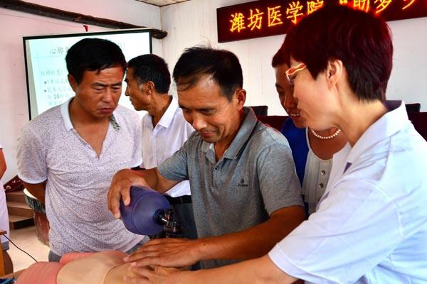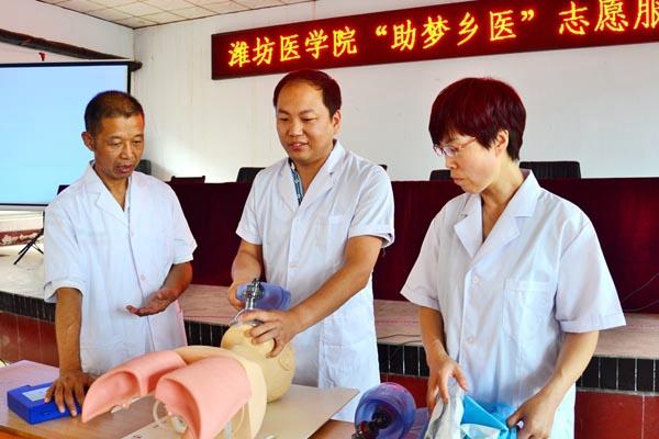 活动内容丰富,校团委书记高洪海、麻醉学系副主任张蕊在必赢官网“第一书记”的带领下,到三个帮包村举行了社会实践基地挂牌仪式,并为村里的农家书屋捐赠了精心挑选的中外名著和儿童图书。附属医院专家积极开展“助梦乡医”志愿服务活动通过课件讲解、模拟人实训和分组指导的方式,对该镇的46名乡村医生进行了医疗知识培训,许多周边乡镇的乡村医生也闻讯赶来学习。麻醉学系师生组成的医疗服务小分队深入田间地头和农户家里,开展了慢性病防治、基本医疗卫生和健康保健知识普及活动。夜幕降临,同学们为三个帮包村的近千名群众进行了“走进新农村唱响主旋律”主题文艺演出,当地群众也纷纷献上精心准备的节目。平原县副书记张舒、县委组织部副部长潘吉兵等领导到场一起观看了演出。志愿服务期间,面向全校招募的8名基础扎实、学业优异的国学达人,将为帮包村的孩子们进行传统文化知识传授及课业辅导。