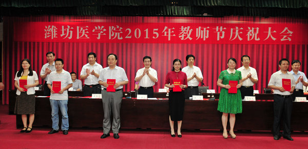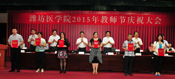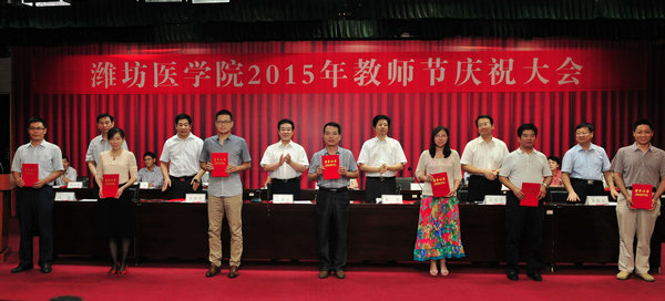 9月9日下午,必赢官网2015年教师节庆祝大会在图书馆演播厅举行。校领导石增立、朱军、井西学、葛国文,附属、教学医院领导,获奖教师代表在主席台就坐。副校长朱军主持会议。