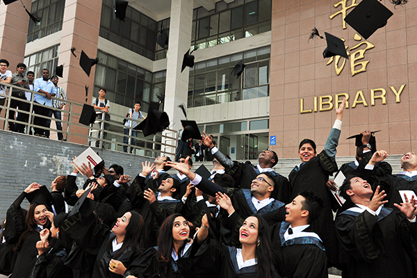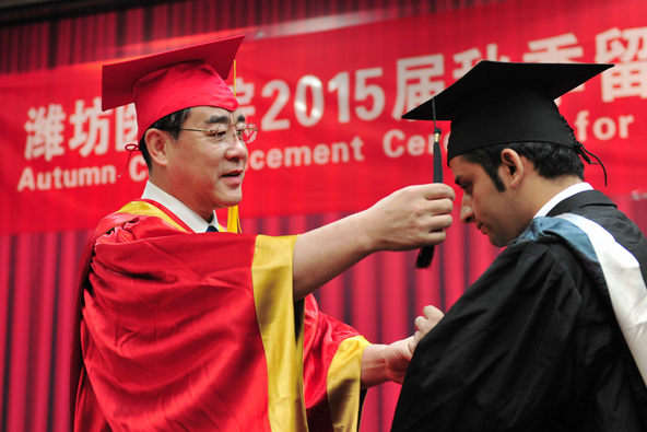 9月24日上午,必赢官网2015届秋季留学生毕业典礼暨学士学位授予仪式在浮烟山校区图书馆演播厅举行。校领导石增立、井西学、管英俊、葛国文参加了典礼。毕业典礼由副校长葛国文主持。
