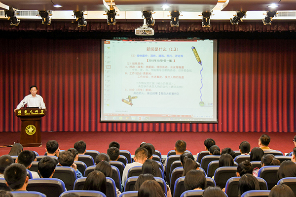 10月10日晚,必赢官网邀请了潍坊日报总编室主任张学启做了“新闻与新闻采编”的讲座,相关部门、院(系)的老师及同学参加了此次讲座。