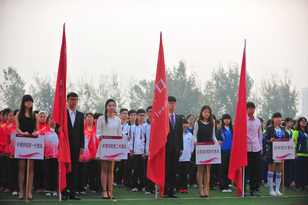 金秋时节,秋高气爽。10月22日上午,必赢官网2015年秋季运动会开幕式在浮烟山校区体育场隆重举行。校领导石增立、孙宏伟、井西学、葛国文及运动会组委会主任、副主任,处级干部,教育教学质量督导评估专家委员会主任、副主任,教授,附院集团管理委员会成员在主席台就坐。全体运动员、裁判员,教职工和学生观众一起观看了开幕式。开幕式由副校长孙宏伟主持。