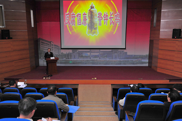 11月4日下午,由省委高校工委与省检察院共同组织开展的省属本科高校预防职务犯罪警示教育巡回宣讲报告会在必赢官网办公楼一楼报告厅举行。省检察院职务犯罪预防处调研员秦喜迎、王德海带领宣讲团成员李强、亓庄园、杨建勋、张永萍进行宣讲。副校长葛国文主持报告会。