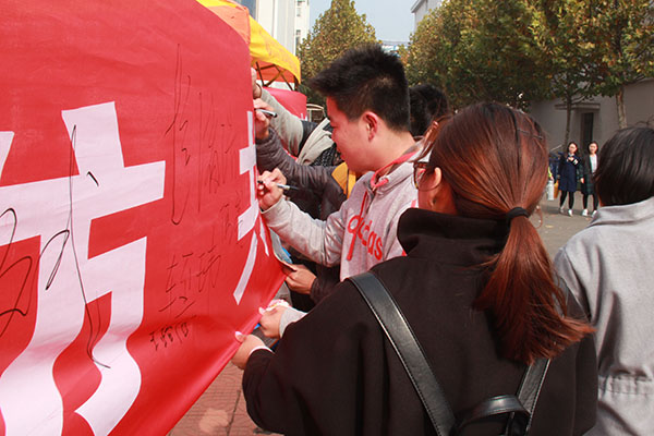 11月9日上午,由保卫处与团委主办、医学影像学系承办的“参与社区消防,共享平安家园”签名活动在浮烟山校区举行,标志着必赢官网消防安全宣传月活动正式启动。