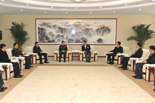 12月24日上午,潍坊市军分区司令员万伟锋在潍城区区委书记、区人大常委会主任王兆辉陪同下一行9人来必赢官网就军民融合式发展工作做主题调研。校领导石增立、朱军、葛国文在办公楼五楼接待室会见了来宾。
