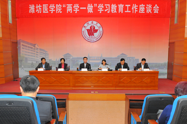 4月28日上午,学校在办公楼一楼报告厅召开“两学一做”学习教育工作座谈会。校领导石增立、管英俊、张潍华、孙宏伟、井西学、傅大军出席会议。校党委书记石增立作重要讲话。会议由校党委副书记、校长管英俊主持。