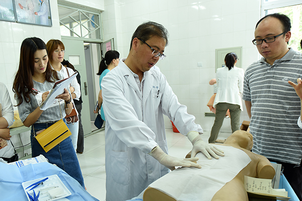 本次培训班为期两天,在总结以往培训经验的基础上,对培训内容、授课方式、培训项目等进行了充分论证和科学安排。吉林大学第一医院迟宝荣教授、北京大学第一医院刘刚教授、山东大学齐鲁医院郭媛教授、北京大学人民医院刘婧副教授、济宁医学院刘永春教授受邀分别做了临床医学专业认证、临床教学的组织和管理、教学查房、模拟教学和集体备课、如何做好住院医师规范化培训的专题报告。附属医院抽调临床专业教师分专业就临床技能操作的标准与流程对各附属教学医院的代表进行了培训。