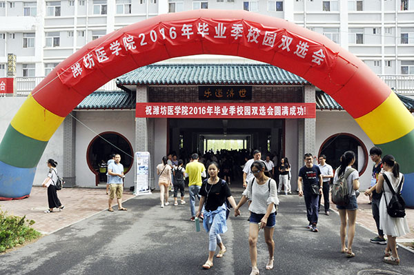 近年来,学校大力拓宽就业渠道,构建就业市场体系。优化完善了校园大型双选会、专场招聘会、专业人才推介和就业指导培训等就业平台建设,发掘就业潜力,丰富就业内容,拓宽就业领域和就业渠道,加强就业实习见习基地建设,为学生多渠道就业提供支持;努力构建由医药主体的传统就业市场、其它专业新开辟的就业市场组成的就业市场体系。同时,出台了《潍坊医学院关于加强大学生创新创业教育的有关意见》,加大经费支持,加强了创新创业的教育和创业基地的建设,完善了创新创业教育课程体系。通过开展“互联网+”创新创业大赛、创业模拟等实践活动,着力提升学生的创新精神、创业意识和创业能力,把创新创业教育贯穿人才培养全过程,以创业促就业。