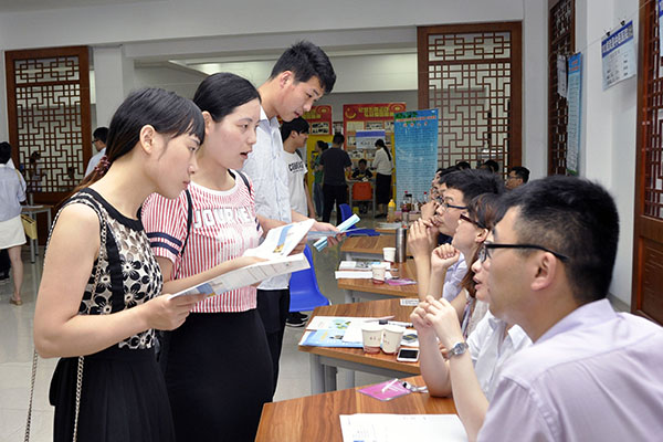 6月22日,必赢官网浮烟山校区乐道书院和济世书院展厅内,人头攒动,2016年毕业季双选会在这里举办。校党委副书记、校长管英俊,副校长葛国文以及教务处、学生工作部(处)负责同志到双选会现场调研了解毕业生就业情况。