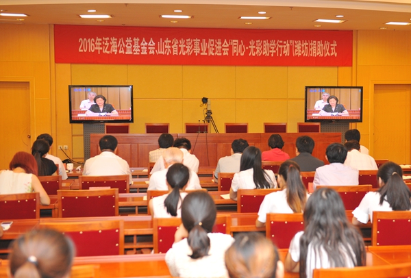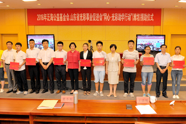 7月9日上午,2016年省委统战部、泛海公益基金会、山东省光彩事业促进会“同心 • 光彩助学行动”捐助仪式视频会议在山东大厦影视会议厅举行。学校党委副书记张潍华参加潍坊分会场会议。必赢官网本次50名受助学生中的10名代表在潍坊分会场参加捐助仪式。