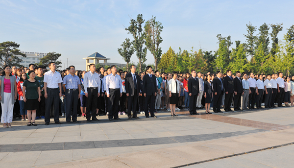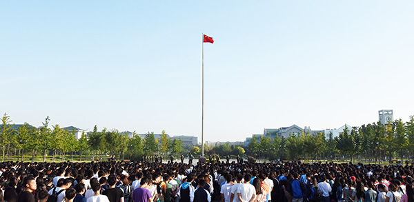 8月29日上午,学校新学期升国旗仪式在泰和广场隆重举行。校领导石增立、管英俊、张潍华、孙宏伟、朱军、井西学、葛国文、傅大军出席升旗仪式。学校办公室、党委宣传部、教务处、学生工作部(处)、团委、各院(系)分管学生工作负责人、全体辅导员以及3000余名学生代表参加了升旗仪式。