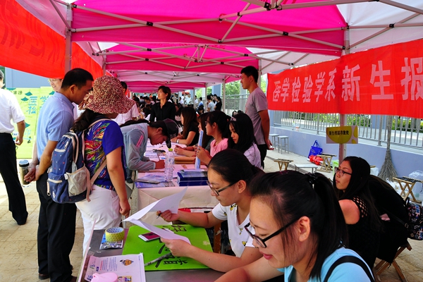 各相关部门、院(系)提前谋划,精心安排,积极开展了一系列活动,全力做好迎新服务工作。校团委组织的接站志愿者们早早就随学校大巴车来到火车站和汽车站,用热情的笑容和周到的服务欢迎新生和家长们的到来。在报到现场,各部门、院(系)老师和志愿者们早已做好了各项迎新准备:党委宣传部设置新生留念墙并组织新媒体工作人员为新生和父母免费拍照留念。教务处、学生工作部(处)设立新生报到“绿色通道”,为家庭经济困难学生办理缓交学费及助学贷款手续,保障新生顺利入学。学校杏林餐厅为新生和家长及时提供丰盛可口的饭菜。保卫处针对近期社会上大学生频遭诈骗的热点现象,提前在学校各处悬挂了醒目的防诈骗横幅,帮助同学提高防范意识。各院(系)在报到现场设立新生服务站,做好新生报到工作,贴心周到、细致入微的服务,让新生一入校就感受到家一样的温暖。