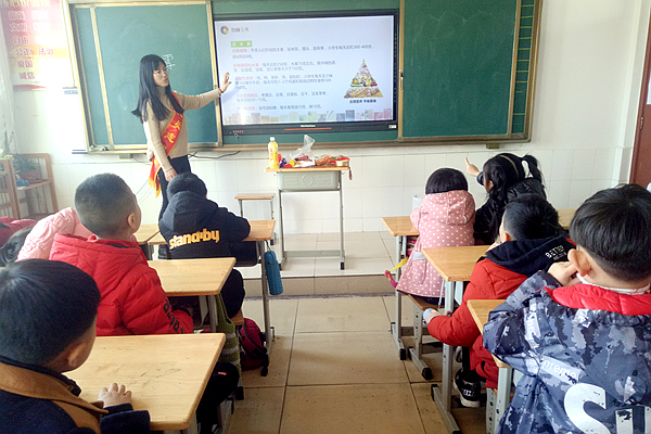 本次活动主要分为宣讲和互动两个环节。在月河路小学三年级1班,党员志愿者通过图片和动画的形式,教同学们分辨有害食品与绿色食品,如何挑选相对健康的零食、识别“三无”食品,如何辨别过期食品以及饮食卫生等。现场气氛十分热烈,宣讲结束后,大家纷纷提问“奶油对身体有什么危害”“超市里的香肠可以吃吗”“寄生虫对我们有什么危害”等,并对志愿者的下一次到来表示期待。