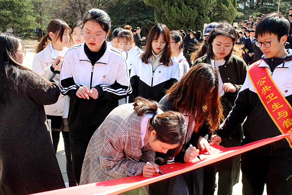近日,公共卫生与管理学院社会保障与市场营销专业团总支于潍坊市泰华城附近举办“我与祖国共奋进”活动。
