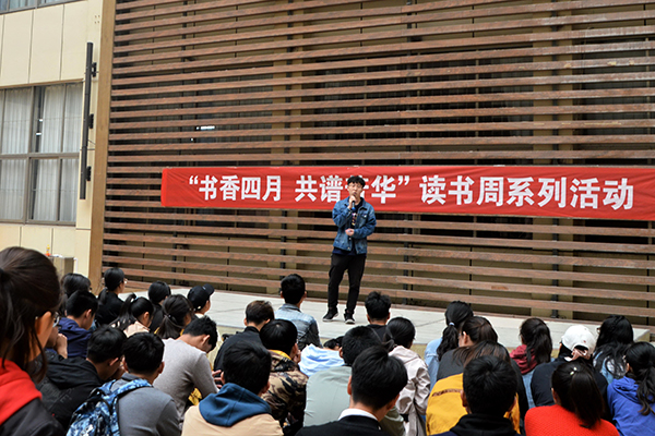 活动伊始,主持人向同学们介绍了本次读书周的活动内容,活动将通过线上展示和线下交流双向开展。随后,来自不同年级的读书爱好者上台讲述了自己的读书故事和感悟,他们侃侃而谈,吸引了众多同学驻足。在此期间,现场志愿者们发出倡议,呼吁同学们亲近书本,与书为伴,与经典为友。最后,大家在横幅上签字留念,为“世界读书日”助力。