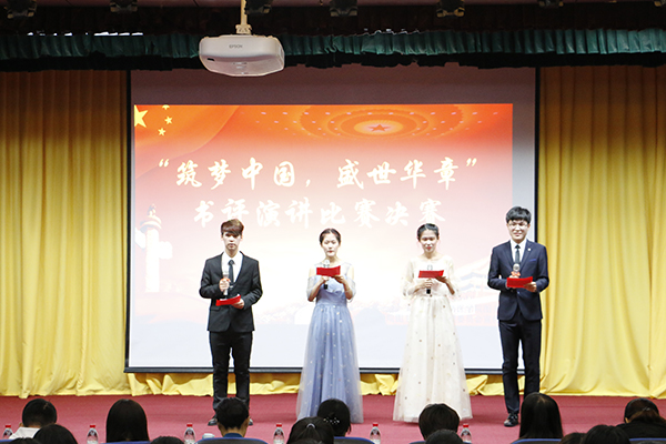 来自全校各院系的近200名选手经过初赛的激烈角逐,10名选手脱颖而出,入围决赛。决赛现场,选手们个个精神饱满、昂扬向上。通过《苏东坡传》分享了东坡居士的为民情怀和处事不惊的豁达心态;《红岩》一书告诉我们,铭记血与火的历史,学习革命者坚贞不屈,不怕牺牲的革命精神和崇高的爱国主义情操;《中国的新革命》让我们看到改革开放的春华秋实;《激荡三十年》激励我们要与时俱进,把握时代脉搏,紧跟时代潮流。评委们根据参赛者的演讲内容、语言表达、舞台表现力和仪表状态等方面的综合表现进行打分,现场评出了一二三等奖。