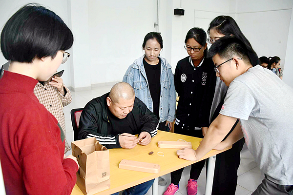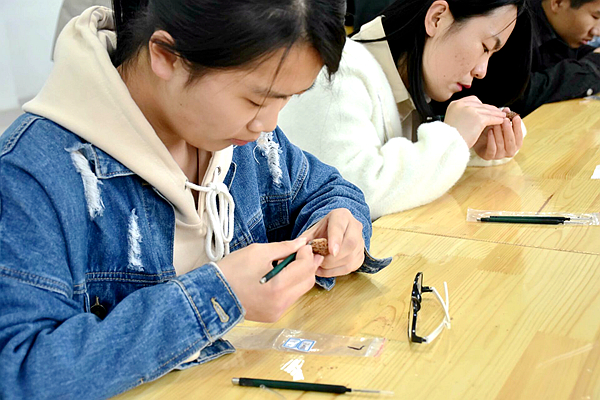 近期,在乐道书院格物讲堂,山东省和潍坊市两级非遗项目代表性传承人、潍坊市核雕界领军人物刘斌(号希金)老师,为必赢官网20多名自愿报名的大学生传承人传授核雕工艺。