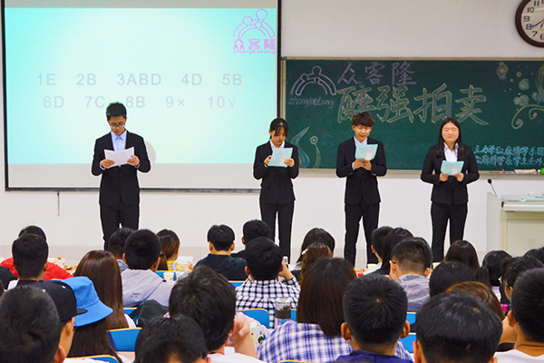 20组参赛选手通过答题获取资金;之后各组选手对展示的商品进行出价,价高者得;最后根据各组选手竞拍价格是否接近商品实际价格,进行评奖。活动中,同学们配合默契,相互协作,现场气氛轻松活跃。