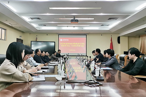 马安宁书记和基础医学院院长王传功分别就济宁医学院和基础医学院的党建、教学、科研、人才引进、学科建设、学生管理等方面的情况作了介绍;董铁军和梁淑娟对潍坊医学院临床医学院的情况作了相应的介绍。双方就以上内容进行了深入交流,希望借此机会两校能够加强交流,互促共进。