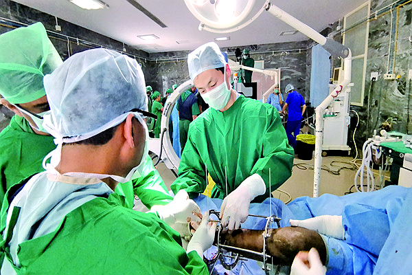 这个医院曾邀请世界各国最著名的医学家来医院义诊及手术治疗,他们不但带来了世界上最顶尖的技术,同时也带来了最新的医疗设备及各种一次性耗材无偿捐赠给医院。秦泗河教授当即表示以后他会定期到这个医院为病人免费诊疗,并且会将中国产的Ilizarov和组合式外固定捐赠给医院。