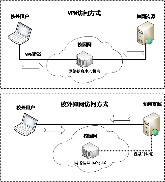 三、原有VPN登录使用知网等资源方式不变,VPN方式和校外知网访问区别如下图: