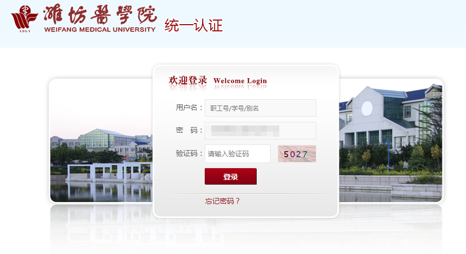 1、进入“潍坊医学院”数字校园界面,输入数字校园登录账号和密码