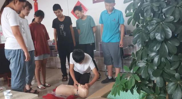 “你知道这个过程里,我们说的最多的一句话是什么吗?”他笑道,是“没关系,我们再来一次”。面对我们的不解,他说:“场地限制,我们只能让孩子分成好几批来观看,目标就是要让每一个孩子都学会心肺复苏。”在整个培训过程中,队员们毫不在乎地上的灰尘,快速摆好急救姿势,跪在人体模型旁。在焦金烁石的天气里,不间断的胸外按压,费时费力的人工呼吸,对大家的体力无不是个巨大的考验。然而当问及少年们是否记住,面对的是一群稚嫩而又懵懂的脸庞。“没关系,我们再来一遍。”于是依然是一套一丝不苟的标准操作流程。孩子换了一批又一批,开放呼吸道的过程没看懂?“没关系,我们再来一次。”胸外按压和人工呼吸的频率不清楚?“没关系,我们再来一次。”没有人抱怨也没有人松懈。“培训结束后,我们很累也很兴奋,觉得成功完成了任务,特别骄傲!”