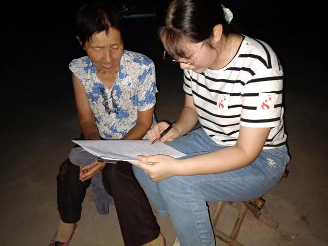 在一张照片里,一位满脸沟壑的老人和一位手臂上贴着“聚火流星队”标志的女孩促膝而坐,女孩正低头在老年人健康调研问卷上认真写着什么。